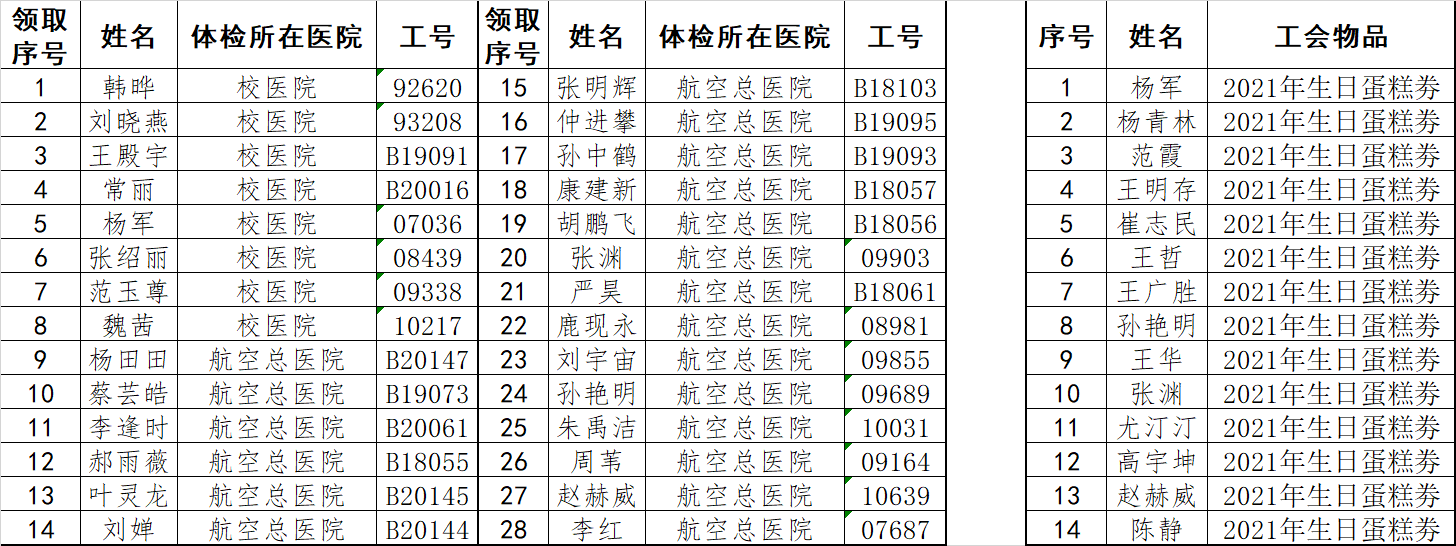 请您从即日开始,在工作日的值班时间可以到新主楼D121办公室领取2020年体检报告(第一批28人)及工会福利物资。