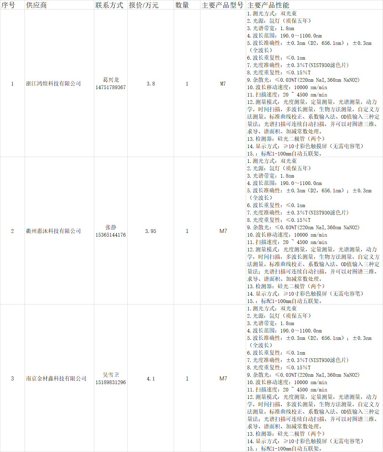 德赢AC米兰中国官方网站紫外可见分光光度计设备采购项目由项目负责人通过比价方式采购,现将比价过程及结果公示如下: